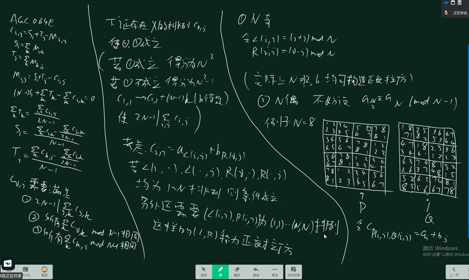 对于 偶数,再利用一点题目性质,由于模 ,所以 个数有两个同余,分别为 。可以,构造 分别在两个列中出现 次,剩下元素每行每列各一个。那就是 的第 行分别是 ,剩下再按某种方式排。