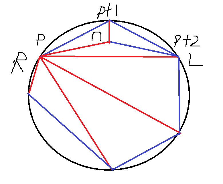 处理一下编号问题,递归解决:在当 内的边已经确定、只有 和 有向外的边、两个生成树都使得 和 联通时处理剩下的部分。把 所有出边划为一组,和这些出边组成三角剖分的剩下的边为另一组,就可以对以 为端点的这些三角形递归到 的对边。